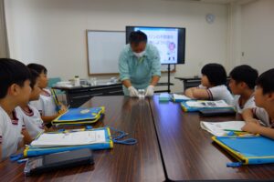 お昼には、上市中央小学校と白萩西部小学校の子供たちとグループになり、一緒に弁当を食べたり、ゲームを行ったりして、仲良く活動することができました。11月には、3校合同学習でまた会えることを楽しみにしている様子でした。