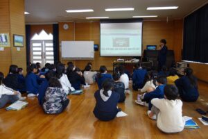 来年度の統合に向け、互いの学校の特色やよさを理解し、最高学年としての意識を高めようと、3校合同学習が行われました。