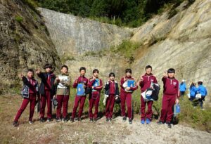 午前中は、立山黒部ジオパークの方から地層についてのお話を聞き、その後、稲村の地層を見学しました。6年生の理科で地層の学習をするので、今日の学びを今後の授業に活かしてほしいと思います。