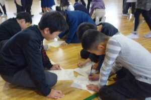 来年度の統合に向けて交流を深めようと、上市中央小学校で3校合同学習会がありました。交流活動では、ジェスチャーゲームや友達ビンゴ等で、他の学校の友達と楽しく関わり合いました。